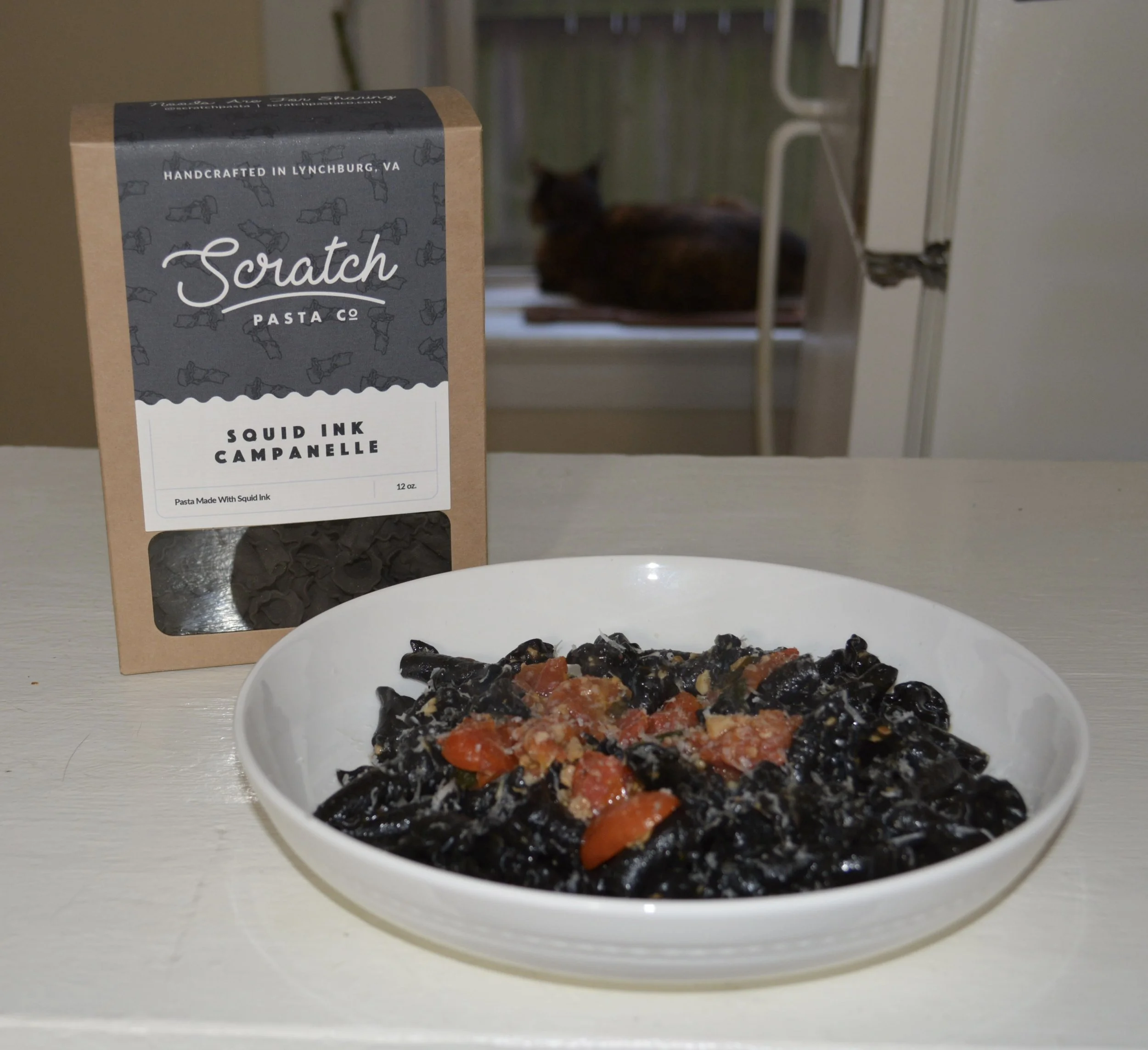 1 cup and 1/2 of Scratch’s Squid Ink Campanelle